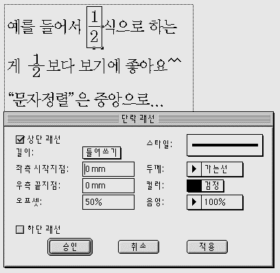글상자를 만들어서 스타일 >> 괘선(커맨드+쉬프트+N) 을 이용해서